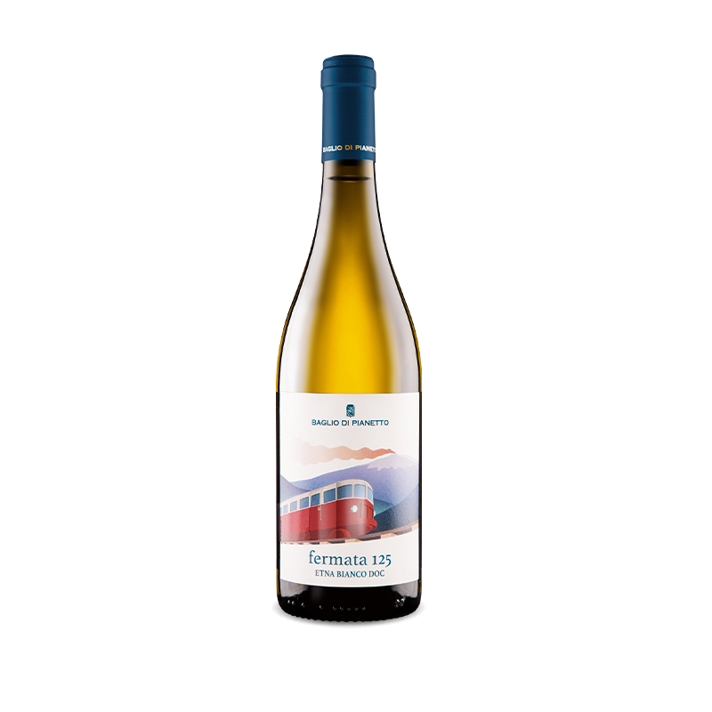 Dal colore giallo paglierino brillante, il nostro Fermata 125 Etna bianco DOC presenta decisi sentori di zagara e acacia con note agrumate. Al palato è un vino equilibrato e sapido, con un finale balsamico lungo e persistente.